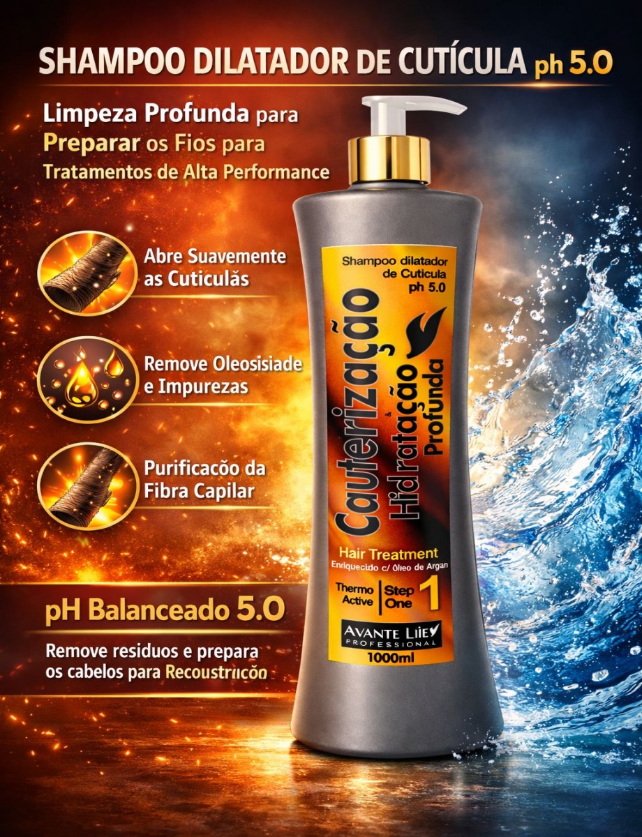O Shampoo Dilatador de Cutícula Ph 5.0 Avante Life foi desenvolvido com tecnologia profissional para promover limpeza profunda e abertura controlada das cutículas, preparando os fios para receber tratamentos reconstrutores de alta performance. Seu pH balanceado de 5.0 atua na purificação da fibra capilar, removendo resíduos acumulados, excesso de oleosidade e impurezas que comprometem a absorção dos ativos.