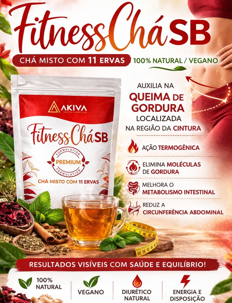 O Fitnesschá SB é um mix de ervas naturais desenvolvido para auxiliar na queima de gordura localizada na região da cintura, promovendo a eliminação de moléculas de gordura através da ação termogênica, reduzindo a circunferência abdominal e melhorando o metabolismo intestinal.