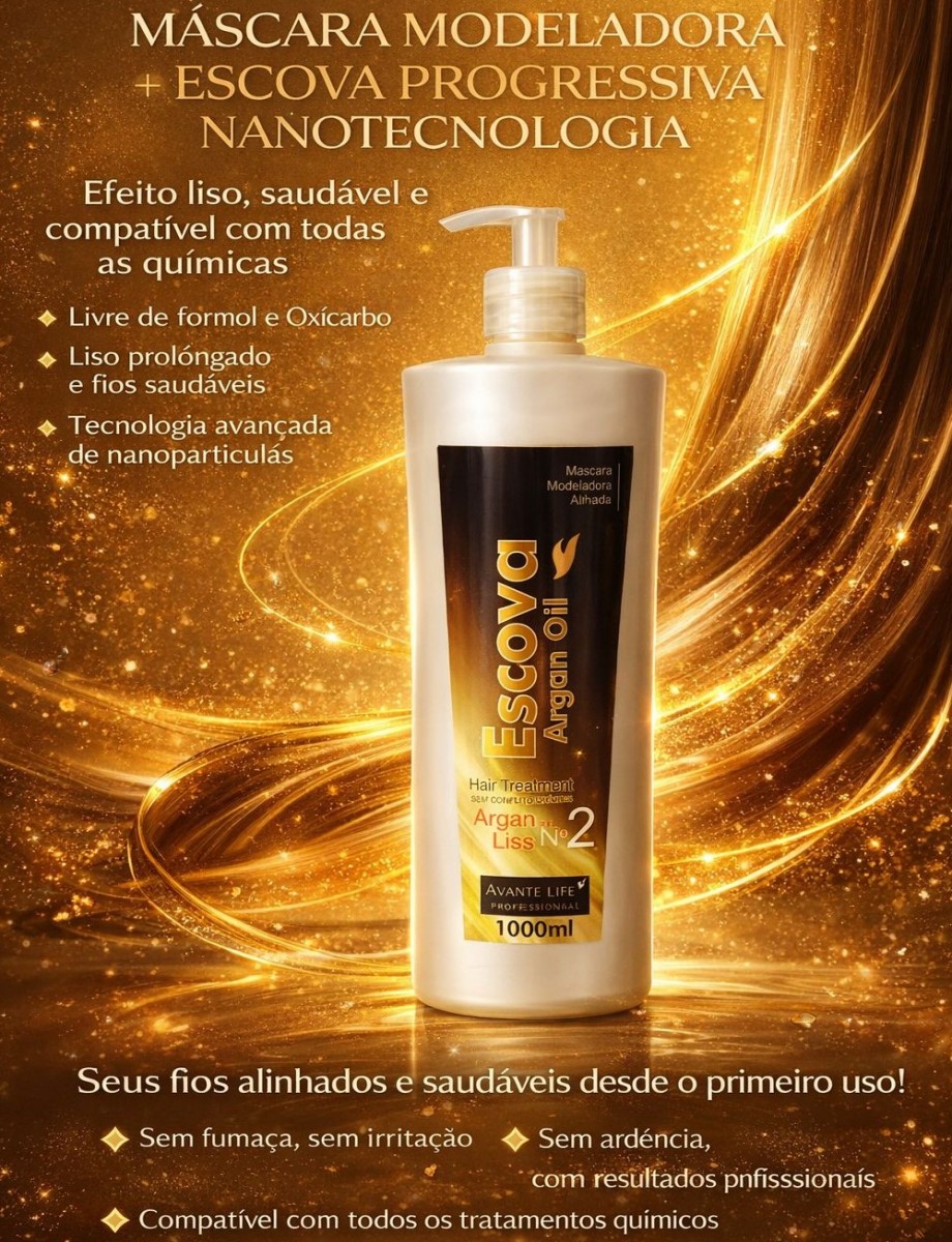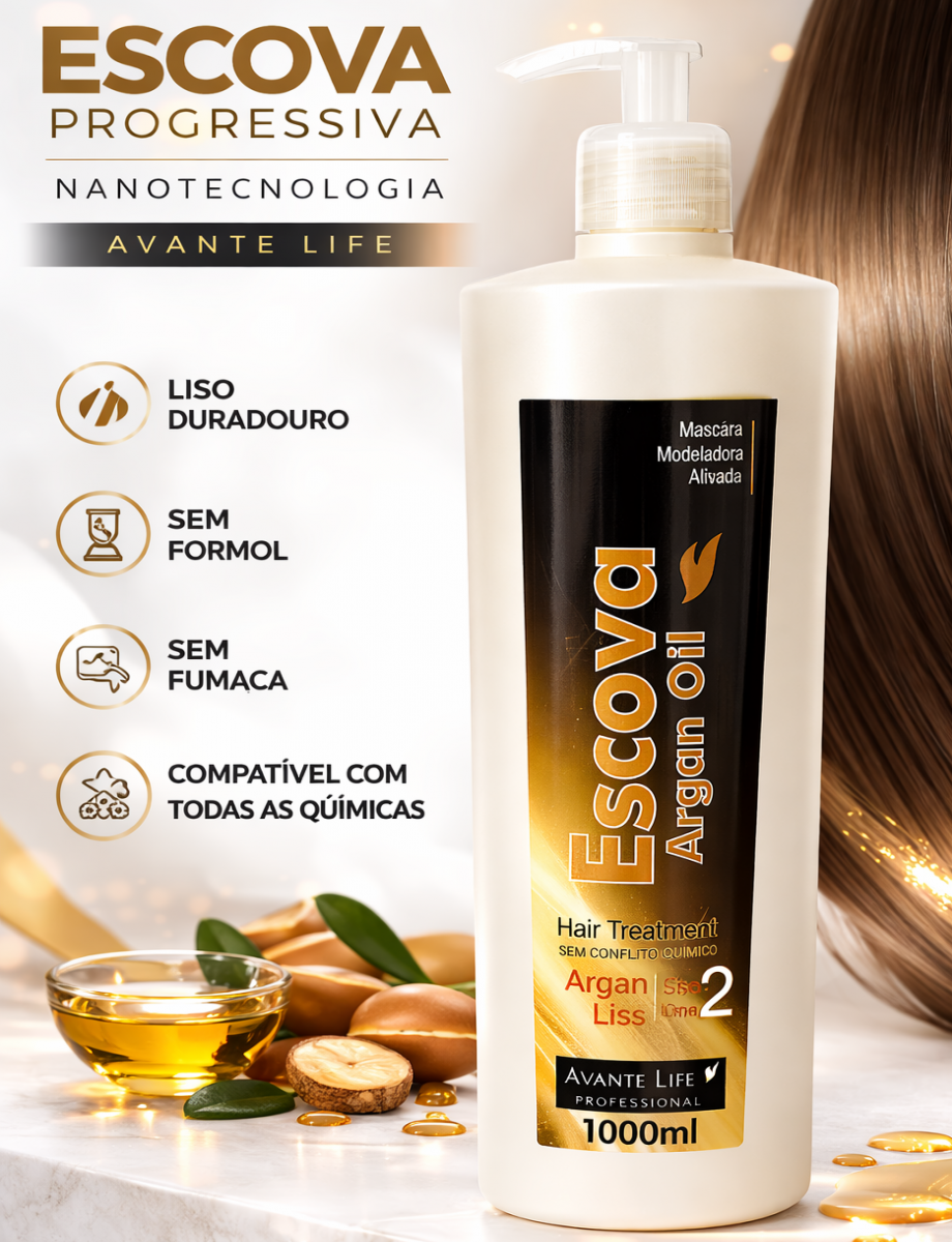A Escova Progressiva Nanotecnologia Avante Life é formulada à base de Oxícarbo e totalmente livre de formol, garantindo um efeito liso duradouro sem danificar a fibra capilar. Sem fumaça, sem irritação e sem ardência, é compatível com todos os tipos de tratamentos químicos, incluindo colorações, alisamentos e progressivas.