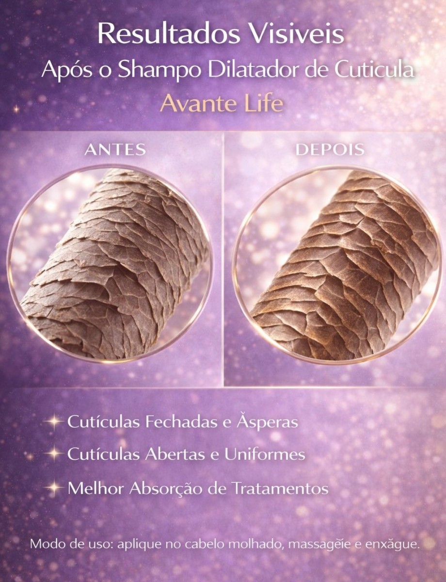 Passo 1 – Shampoo Dilatador de Cutícula Avante Life