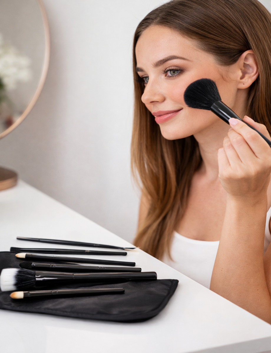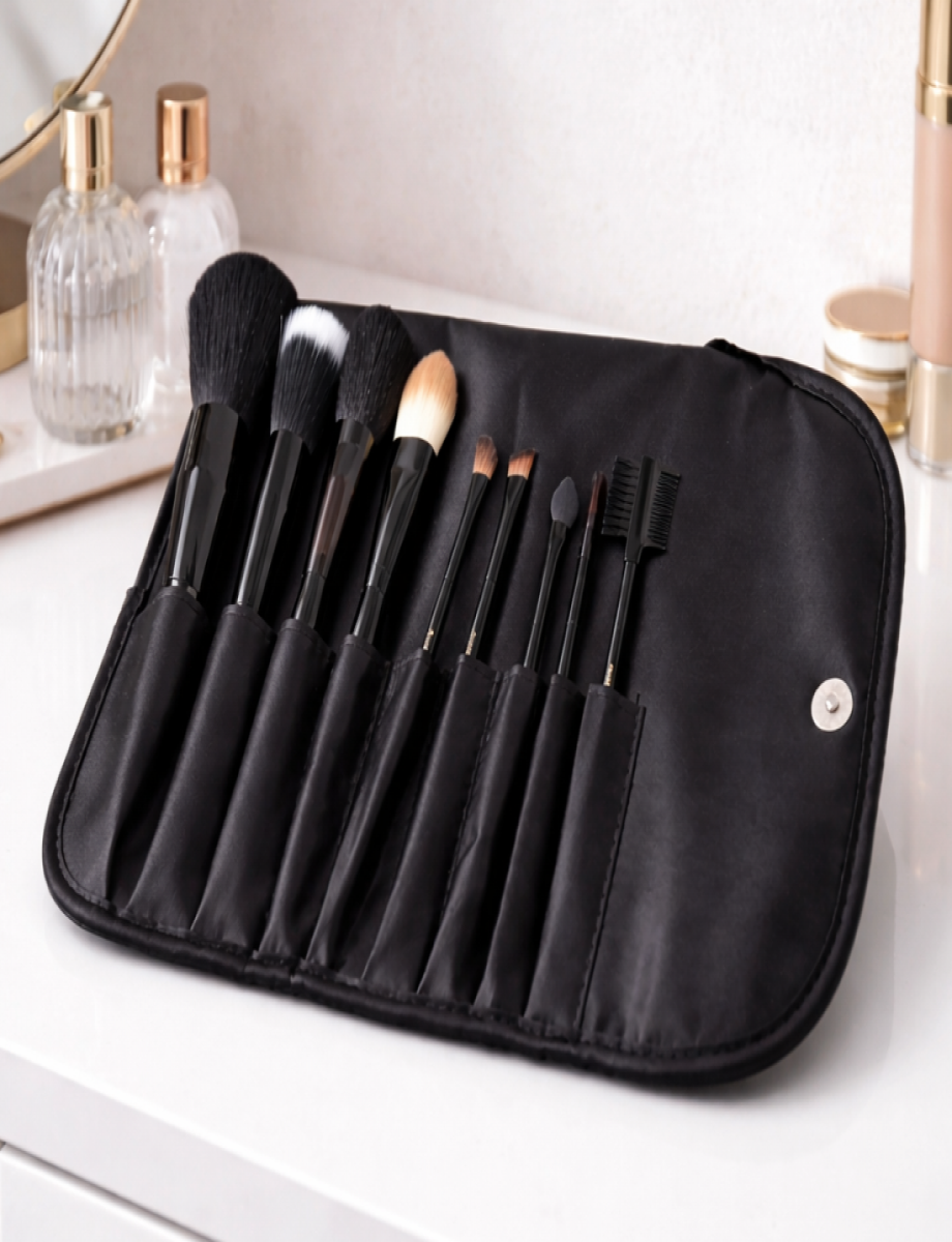 Complete 9-piece makeup brush kit for professional-quality results.