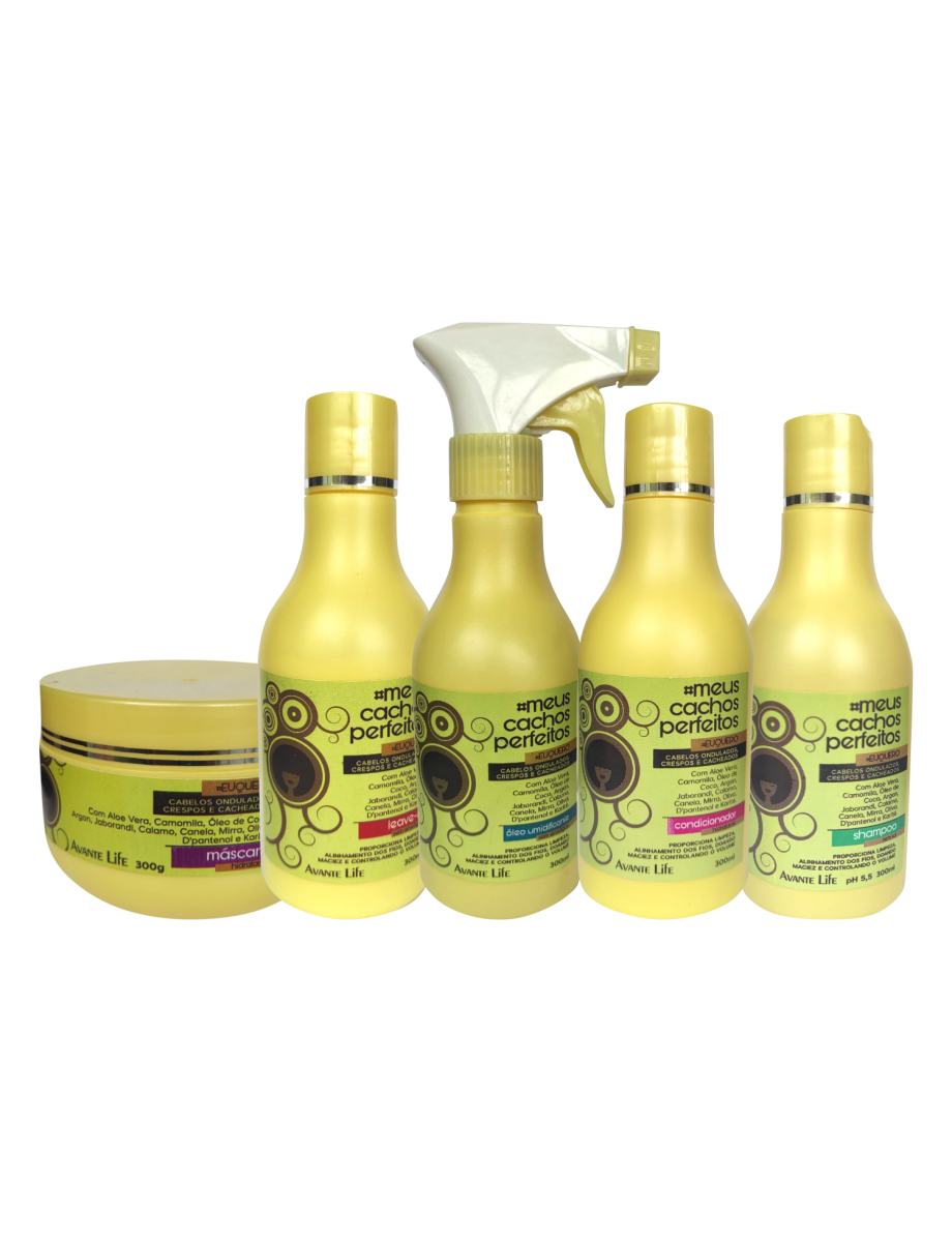 Meus Cachos Perfeitos Ter cachos perfeitos é conseguir deixar seus cachinhos do jeito que você quer. Para isso criamos o Kit cachos Perfeito Avante Life Que contém 5 passos composto por: Passo 1: Shampoo Cachos Avante Life vai hidratar, definir e realçar os seus cachos. Para cabelos ondulados, cacheados e crespos, o shampoo Avante Meus Cachos limpa e hidrata, tornando os cachos mais resistentes e protegendo sua estrutura proteica contra radicais livres. Os lipídios de recomposição deixam o cabelo mais fácil de desembaraçar, mesmo só com shampoo. Óleo de coco, Pro-Vitaminas e antioxidantes também estão presentes na fórmula. Nosso Sampoo Cachos contém em sua composição: Aloe Vera; Camomila; óleo de coco; Argan; Jaborandi; Oliva; Canela; Mirra, Calamo; D´Pantenol; Mateiga de Karité dentre outros ativos maravilhosos que darão um resultado extraordinário. - Anti Frizz. - Ação Anti Volume. - Possui proteção UV. - Alinhamento dos fios. - Maciez - Brilho. Passo 2: Condicionador Meus Cachos Perfeitos, conta com alta tecnologia, o poder do complexo de bioaminoácidos – ativos naturais e fonte de proteínas e aminoácidos, recuperam o interior dos fios e agem na parte externa da fibra, fortalecendo e restaurando profundamente os cabelos danificados. O condicionador Hidratação Reparadora nutre os fios deixando-os reparados e macios. composição: Aloe Vera; Camomila; óleo de coco; Argan; Jaborandi; Oliva; Canela; Mirra, Calamo; D´Pantenol; Mateiga de Karité dentre outros ativos maravilhosos que darão um resultado extraordinário. - Anti Frizz. - Ação Anti Volume. - Possui proteção UV. - Alinhamento dos fios. - Maciez - Brilho. Benefícios: • Nutrição profunda. • Fortalecimento. • Selagem de cutículas. • Redução de danos. • Brilho intenso. • Reparação de pontas duplas. • Recuperação do cabelo e ação antifrizz. • Proteção térmica. • Facilidade para pentear. • Ideal para cabelos secos. Passo 3: Máscara Cachos Avante Life Ela funciona muito bem como hidratação para cabelo cacheado por ter uma textura super leve, controlando cachos e frizz do jeitinho que a gente gosta. Promete: Define e suaviza os fios deixando os cachos controlados e o cabelo macio, impedindo a formação de frizz. Passo 4: Umidificador Meus Cachos Perfeitos Avante Life 300ml: O Umidificador Cachos Avante/Akiva é ideal para definir os cachos e controlar o volume, umidifica os fios hidratando a fibra capilar facilitando o penteado. Desembaraça e nutre, além de ser resistente a umidade do ar controlando assim os fios rebeldes e arrepiados. Nosso Umidificador contém em sua composição: Aloe Vera; Camomila; óleo de coco; Argan; Jaborandi; Oliva; Canela; Mirra, Calamo; D´Pantenol; Mateiga de Karité dentre outros ativos maravilhosos que darão um resultado extraordinário. - Anti Frizz. - Ação Anti Volume. - Possui proteção UV. - Alinhamento dos fios. - Maciez _ Brilho e aparência de sempre molhado. Sugestão de uso: 1 - Com os cabelos secos ou úmidos, borrifar uma pequena quantidade do Umidificador Avante no comprimentos e pontas; 2 - Pentear para uma melhor distribuição do produto; 3 - Finalize modelando como desejar. Resultado: Cachos definidos e controlado, facilitando assim o desembaraço e promovendo hidratação e nutrição capilar sem agredir os fios. *Não testado em animais; Passo 5: Leave-In Avante Life Meus Cachos Perfeitos Creme para pentear indicado para cabelos ondulados, cacheados ou crespos. define as curvas e ajuda a desembaraçar. Para fios saudáveis, lindos e sem frizz. Fórmula rica que penetra fundo na fibra capilar e traz hidratação e emoliência, essenciais para a saúde e beleza dos cachos. Perfeito para quem quer valorizar e assumir sua textura natural. Ação Condicionador Meus Cachos Perfeitos, conta com alta tecnologia, o poder do complexo de bioaminoácidos – ativos naturais e fonte de proteínas e aminoácidos, recuperam o interior dos fios e agem na parte externa da fibra, fortalecendo e restaurando profundamente os cabelos danificados. O condicionador Hidratação Reparadora nutre os fios deixando-os reparados e macios. composição: Aloe Vera; Camomila; óleo de coco; Argan; Jaborandi; Oliva; Canela; Mirra, Calamo; D´Pantenol; Mateiga de Karité dentre outros ativos maravilhosos que darão um resultado extraordinário. - Anti Frizz. - Ação Anti Volume. - Possui proteção UV. - Alinhamento dos fios. - Maciez - Brilho. Benefícios: • Nutrição profunda. • Fortalecimento. • Selagem de cutículas. • Redução de danos. • Brilho intenso. • Reparação de pontas duplas. • Recuperação do cabelo e ação antifrizz. • Proteção térmica. • Facilidade para pentear. • Ideal para cabelos secos. Vitamina E: potente antioxidante que revitaliza. Como Usar Meus Cachos Perfeitos. Conselho de Aplicação Nos cabelos limpos e úmidos, aplique a quantidade suficiente do creme para pentear pelo comprimento e pontas, mas evite a raiz. Com um pente de dentes largos, desembarace os fios e deixe secar naturalmente ou use um difusor. Modele como desejar. Nossos Profissionais Ensinam Evite passar o creme próximo da raiz, pois isso pode causar oleosidade. Fique atento à quantidade de produto aplicada nos cabelos para não dar aspecto pesado. Resultado Seus cachos definidos, livres de frizz, desembaraçados e muito saudáveis, cheios de vida e muito brilho.
