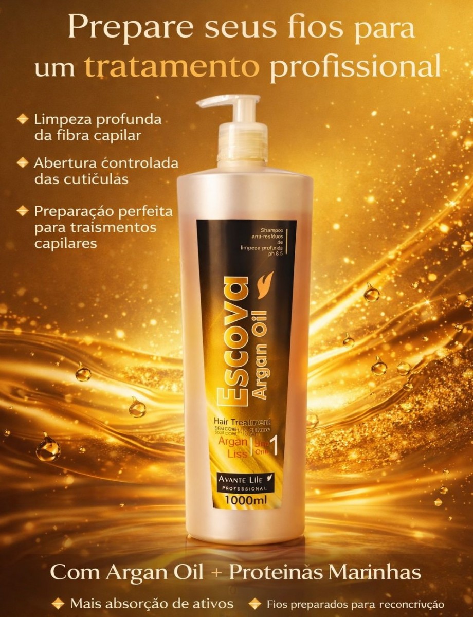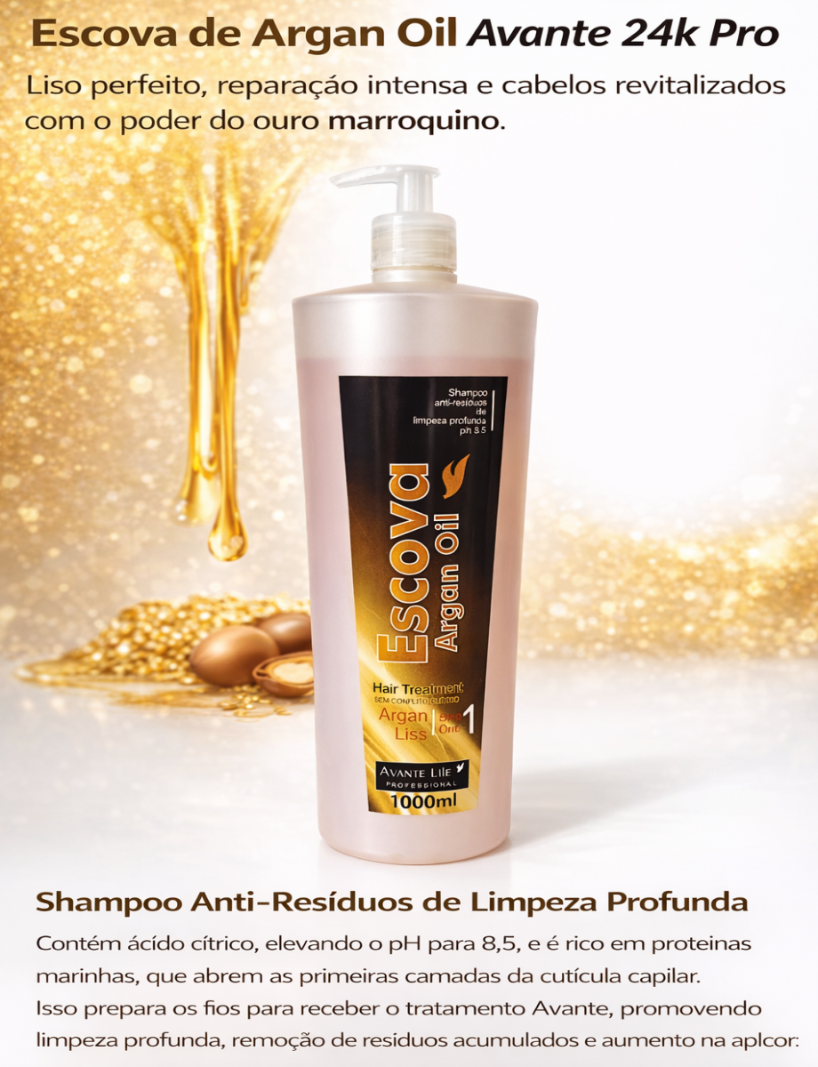 Pensando em facilitar sua rotina de beleza, a Avante apresenta a Marocco Argan Oil 24k Pro, enriquecida com o poderoso ouro marroquino. Sua fórmula proporciona tratamento completo e fios lisos, sedosos e nutridos.
