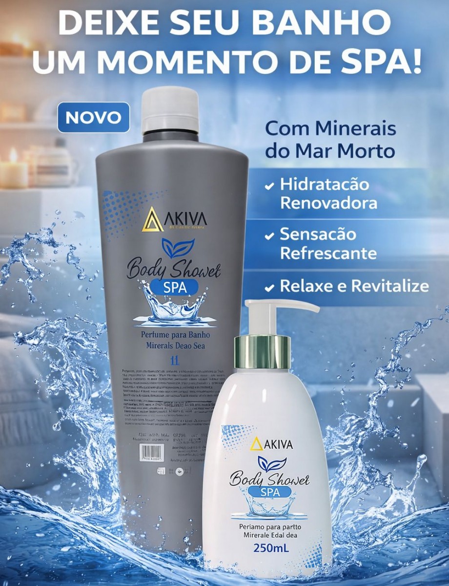 Desenvolvido com o que há de mais avançado na área de Spa e bem-estar, o Body Shower SPA Akiva oferece uma nova forma de prazer ao tomar banho. Mais do que um sabonete líquido, trata-se de um sofisticado perfume de banho que transforma sua rotina diária em um verdadeiro ritual de cuidado e relaxamento.